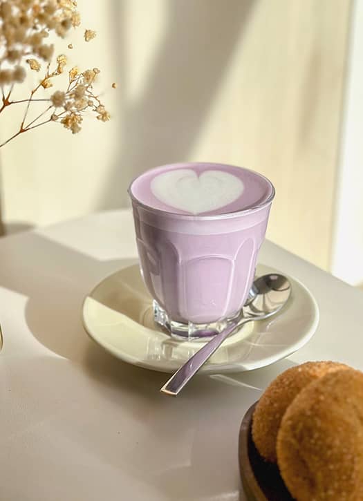 Kapé Café, 17 rue de Malte, Paris 11e. Ube Latte à 5 €. Ouvert du mercredi au vendredi de 10h à 17h30 et le week-end jusqu’à 18h.