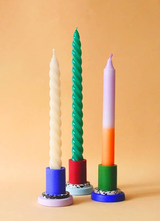 On vous a déjà donné le secret dans notre sélection de boutiques où shopper ses cadeaux de Noël : Klin d'œil est une véritable caverne de trésors à poser sous le sapin. Et ces bougeoirs en jesmonite ultra-colorés en sont de parfaits exemples : une couleur fun, des pièces qui font toutes la différence et surtout uniques. Chaque pièce est faite à la main et avec amour, idéal à offrir avec une bougie torsadée pour un combo parfait.