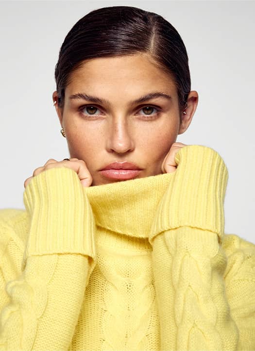 Vu sur tous les défilés printemps-été 2025 de Jacquemus à Chloé, le jaune beurre a clairement donné le ton cette saison. Une couleur lumineuse qui réchauffe instantanément le teint et s’impose comme l’une des tendances fortes que l’on continue d’adopter. From Future tape dans le mille avec ce col roulé en cachemire torsadé : le genre de pull qu’on enfile une fois… et qu’on ne veut plus quitter.