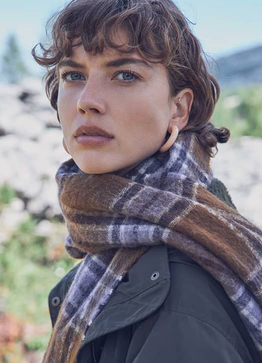 Envie d’être cosy, même en sortant ? On enroule sa grosse écharpe Maison 123 marron, dont les carreaux confèrent un esprit country chic. Pour compléter le look, on ajoute une paire de solaires, son beau manteau, et le tour est joué.