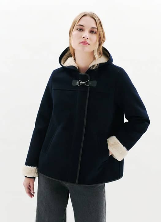 Le manteau Guimosse de Caroll joue la carte de la simplicité bien pensée. Avec sa coupe droite et sa longueur courte, il structure la silhouette sans rigidité. La laine apporte le confort nécessaire pour l’hiver, tandis que son design épuré en fait une pièce facile à porter par-dessus un jean ou un tailleur.