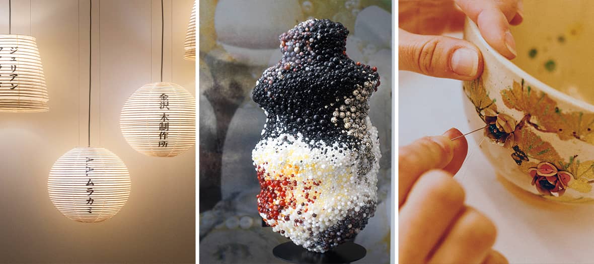 Embarquement immédiat pour un voyage au cœur de la matière, de la créativité et de l’artisanat à mi-chemin entre Tokyo et Paris. Entre sculpture, céramique, textiles ou même installations lumineuses, on déambule au milieu de toutes ces incroyables créations reliant le savoir-faire emblématique japonais à celui de la France. Ici, l’art délicat du tressage ajiro-bari dialogue avec le travail du plissé d'Atelier Lognon de la Maison Lemarié ; la céramique du maître Zengoro Eiraku se retrouve pimpée de fleurs et d’insectes par la maison de broderie française Atelier Montex, quand les fleurs imprimées façon karakami – technique traditionnelle japonaise – font face à celles tout en volume de la Maison Lemarié.