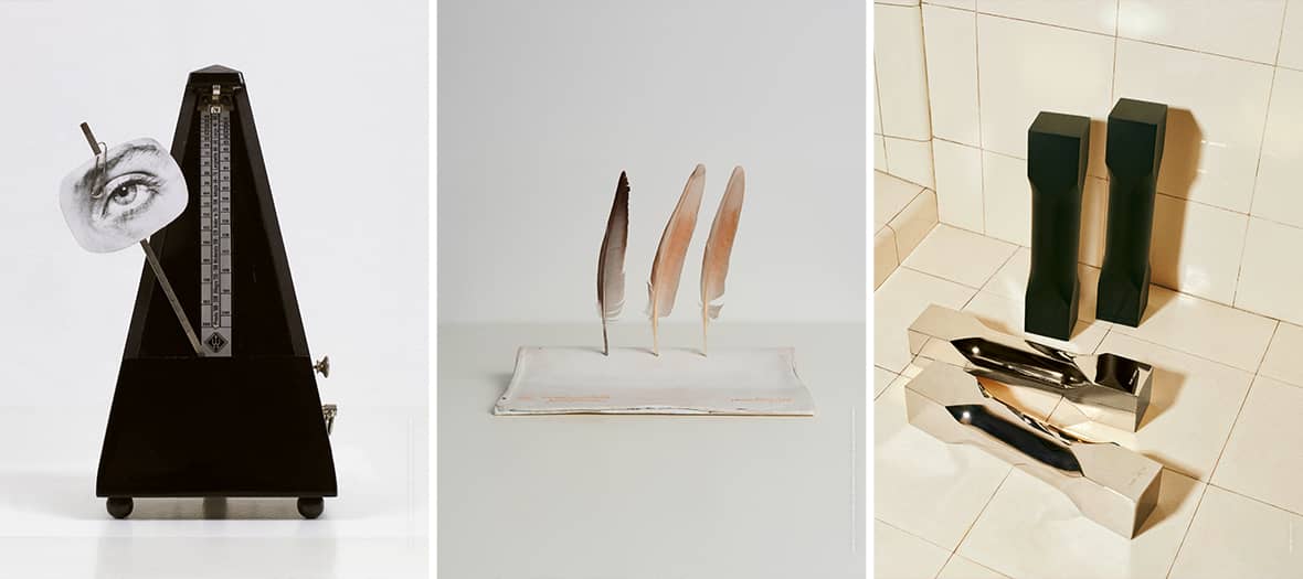Objets de mon affection au Saint Laurent Rive Droite Paris, 213 rue Saint-Honoré, Paris 1er. Jusqu’au 22 février, ouvert le lundi, mardi, jeudi, vendredi et samedi de 10h à 19h30, le mercredi jusqu’à 18h et le dimanche de 11h à 19h. Haltères miroirs à 1750 €, haltères noires à 1 350 €.