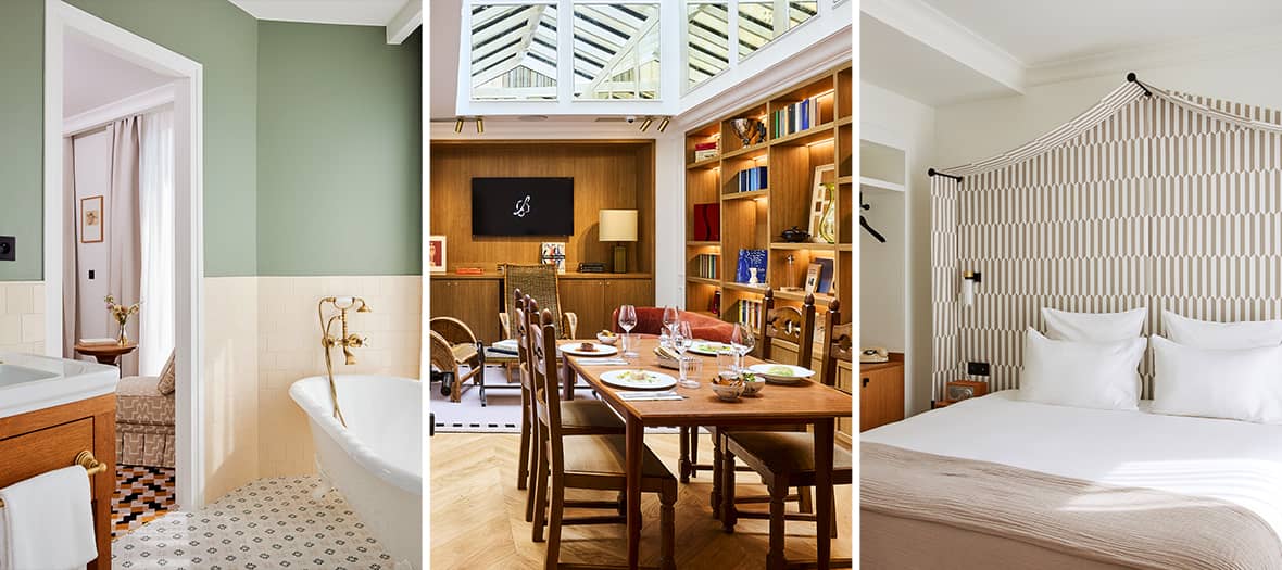 Quant aux suites Victoire et César, situées au 4e étage, elles offrent des espaces vastes allant jusqu’à 75 m², salon avec cheminée, mezzanine ouverte pour accueillir les familles, grands balcons avec vues à couper le souffle et salles de bains combinant baignoire et douche. Ces suites sont conçues pour un séjour d’exception où élégance et convivialité sont au rendez-vous.