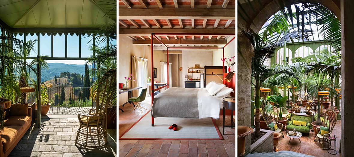 L’architecture signée Pierattelli Architetture respecte la distribution originelle des lieux, rehaussée par des intérieurs raffinés faits de fresques néo-classiques, trompe-l’œil et décors classiques restaurés, ponctués de matériaux d'origine et d'artisanat local. Les 22 chambres et suites spacieuses, dont certaines avec salons d'accueil, dégagent une atmosphère chaleureuse et authentique, idéale pour une escapade conviviale et chic. Le vaste jardin en terrasse, les rosiers grimpants et la glycine sur les toits complètent ce tableau idyllique.